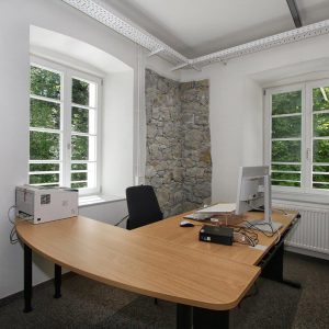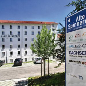 Das Industriedenkmal „Alte Spinnerei“ hat die Sozialbau bis 2016 aufwändig kernsaniert. Auf rund 4.000 m² Gewerbefläche nutzen unsere Mieter bfz-Berufliches Fortbildungszentrum der Bayerischen Wirtschaft, das Jobcenter und Dachser 140 mit modernster Bürotechnik ausgestattete Arbeitsplätze. Diese sind wie alle unsere Gebäude durchgehend mit Glasfaser- und EDV-Vernetzung sowie LED-Beleuchtung eingerichtet.
